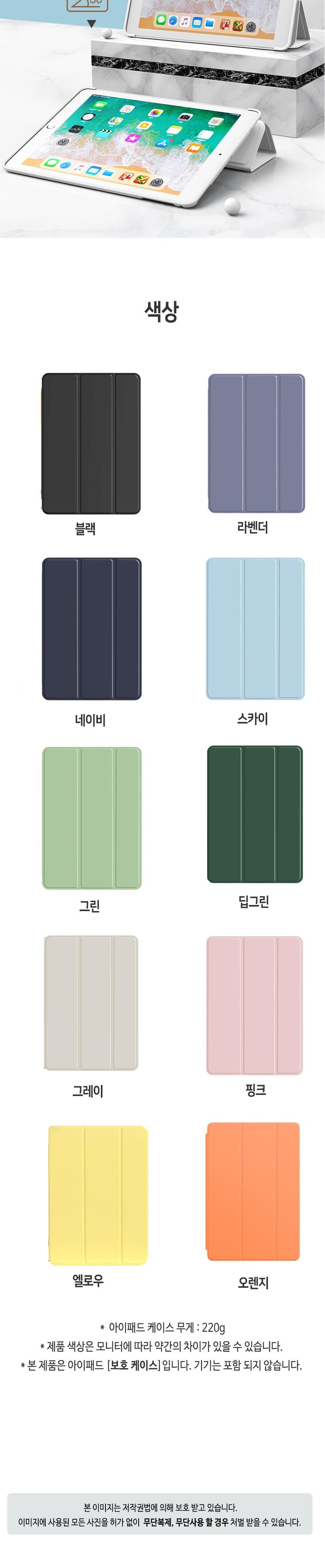 | 품명 및 모델명 | 아이패드 7/8/9세대 10.2인치 스마트커버 | 인증/허가 사항 | 해당사항무 |