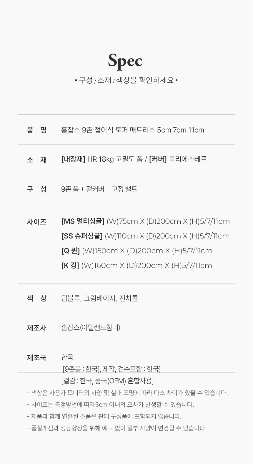 | 제조자(수입자) | 홈잡스(아일랜드침대) | 제조국 | 대한민국 |