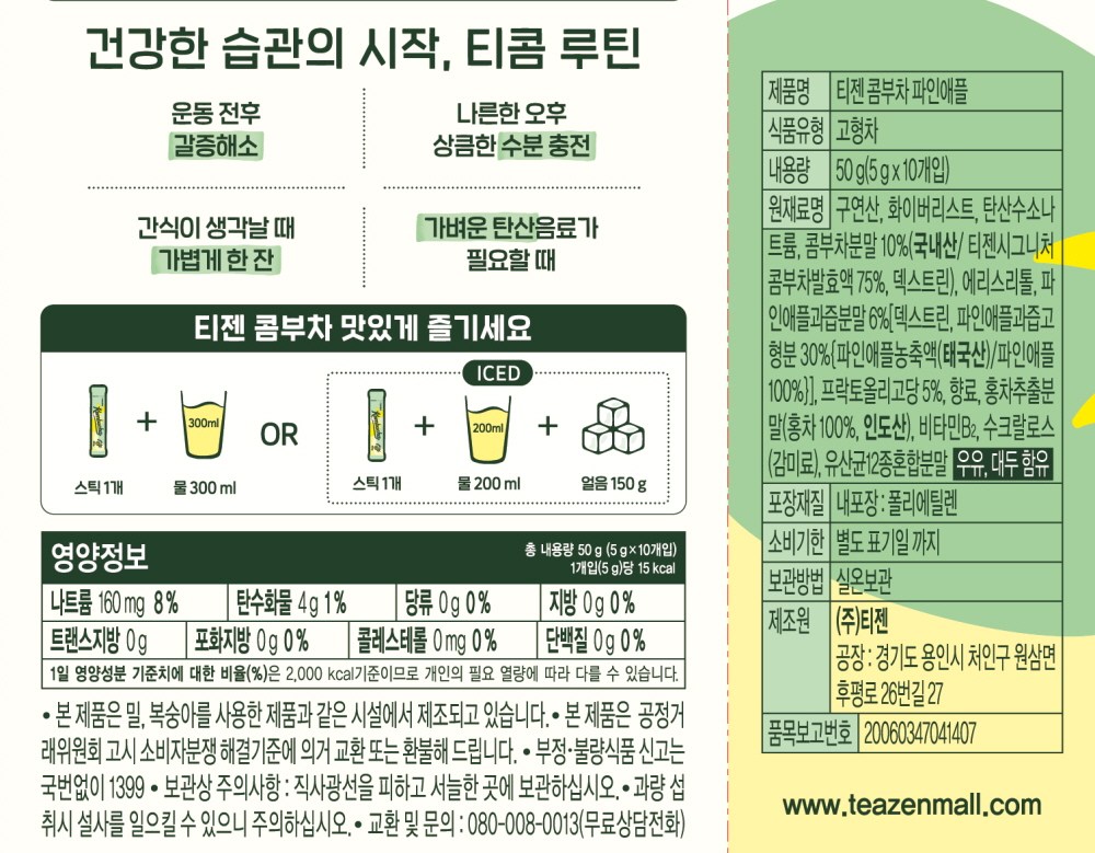 | 포장단위별 내용물의 용량(중량), 수량 | 컨텐츠 참조, 6개 | 원재료명 및 함량 | 컨텐츠 참조 |