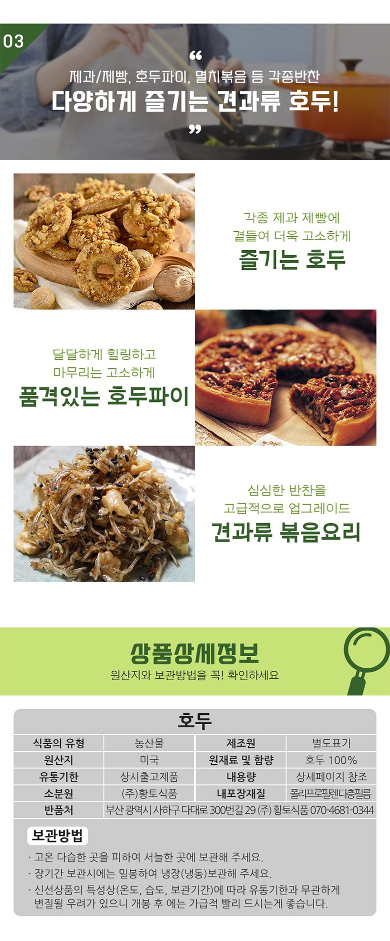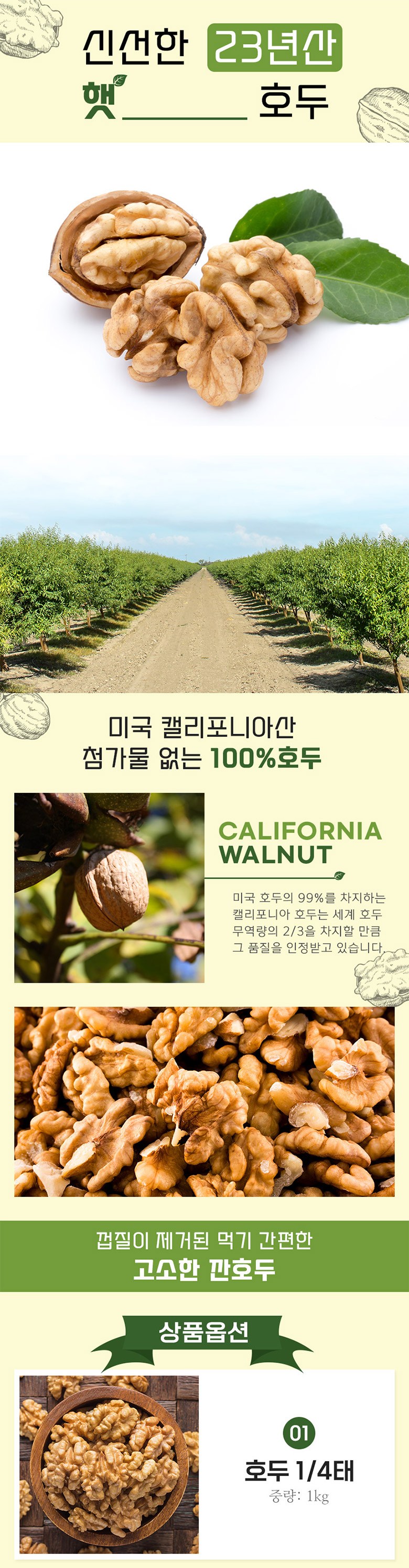 | 품목 또는 명칭 | 상품 상세페이지 참조 | 포장단위별 내용물의 용량(중량),수량,크기 | 호두 1/4태 1kg |