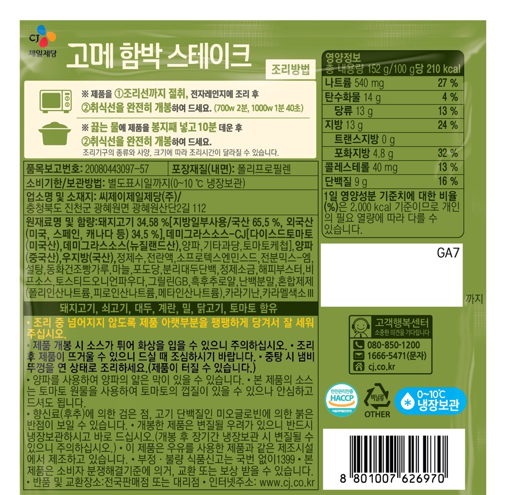 | 제품명 | 고메 함박 스테이크 | 식품의 유형 | 컨텐츠 참조 |