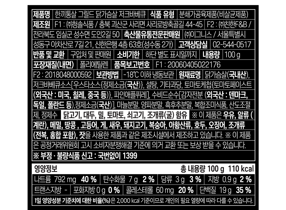 | 포장단위별 내용물의 용량(중량), 수량 | 100g x 20개,1개 | 원재료명 및 함량 | 컨텐츠 참조 |