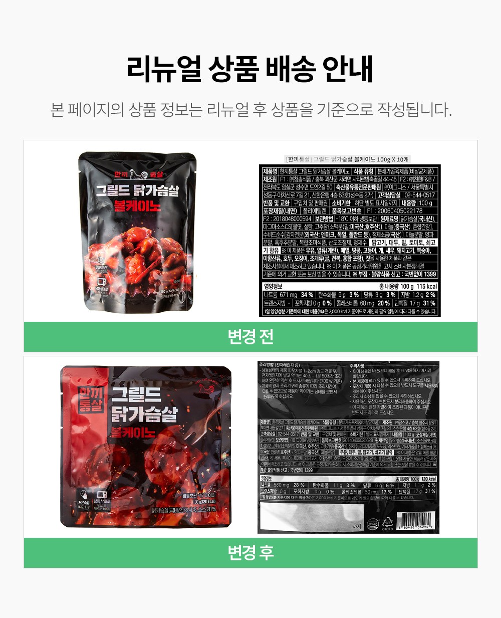 매일 먹는 평범한 닭가슴살에 지치셨다면, 그릴드 닭가슴살 볼케이노를 만나보세요. 매콤한 소스의 풍미가 닭가슴살에 촉촉하게 스며들었는데요. 약 8시간 이상 저온에서 숙성해 부드러운 식감을 완성했어요. 전자레인지로 조리할 수 있어 간편하기까지 하답니다. 식단 관리가 필요할 때 드셔도 좋고, 샐러드의 재료로도 제격이에요.