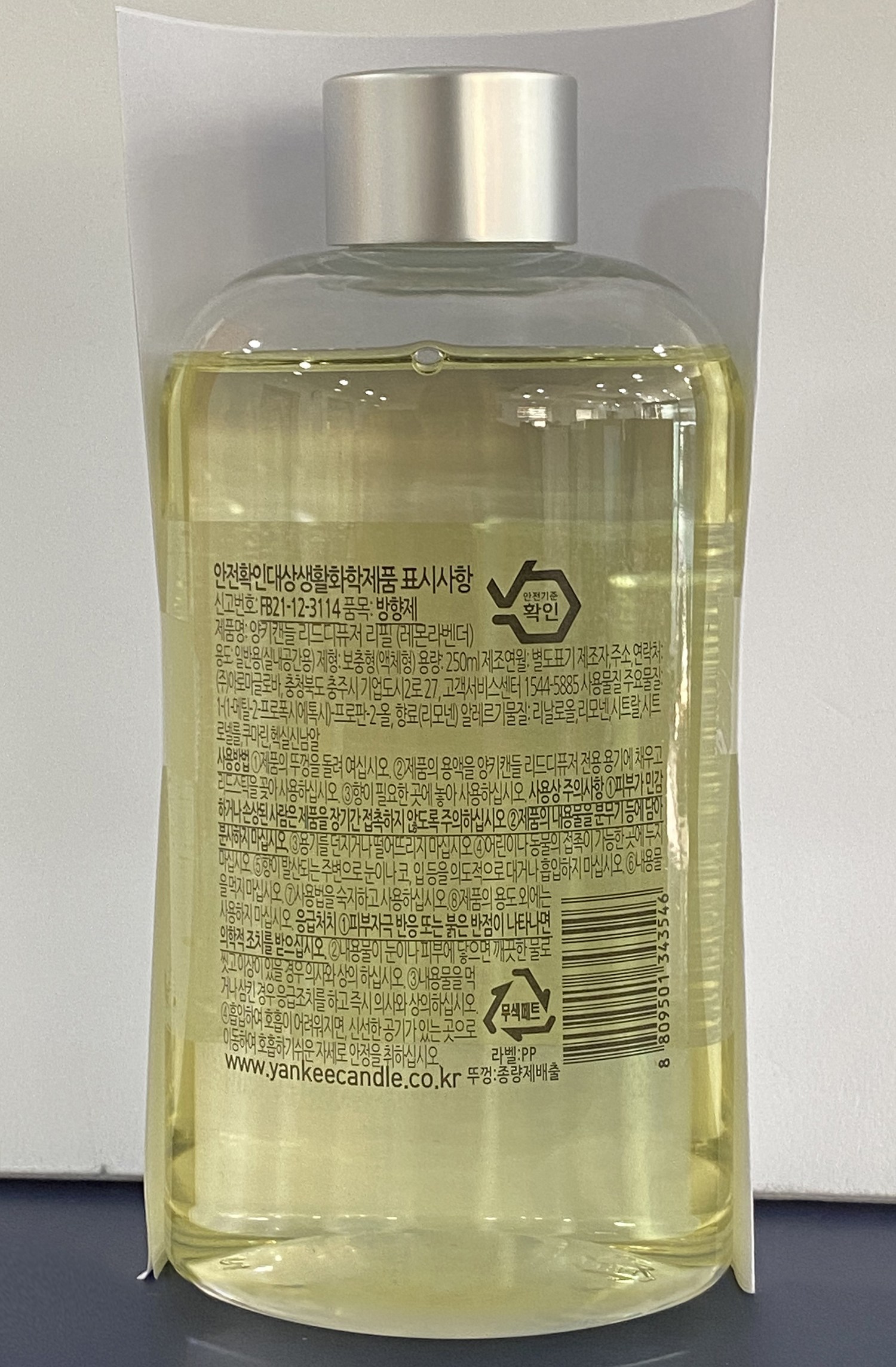| 품목 및 제품명 | 양키캔들 디퓨저 리필오일 | 용도(표백제의 경우 계열을 함께표시) 및 제형 | 일반용(실내공간용) / 보충형(액체형) |