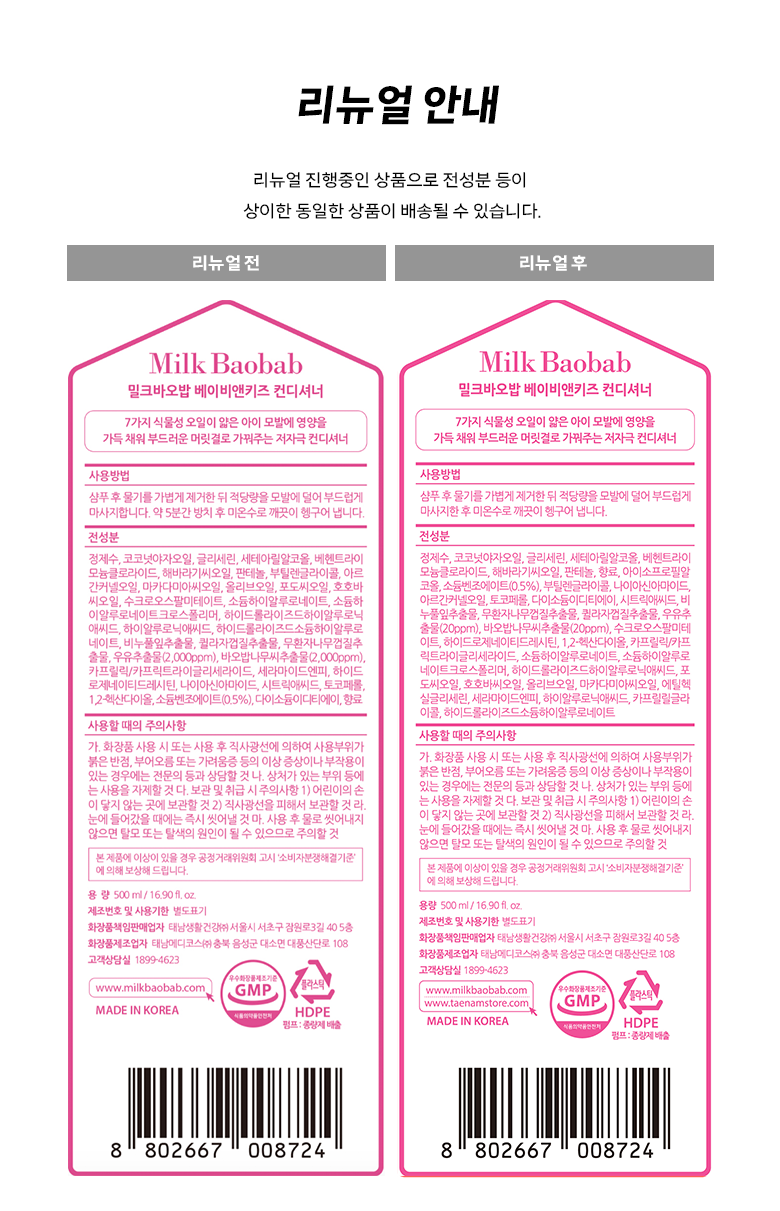 | 용량(중량) | 500ml | 제품 주요 사양 | 모든 모발용 |