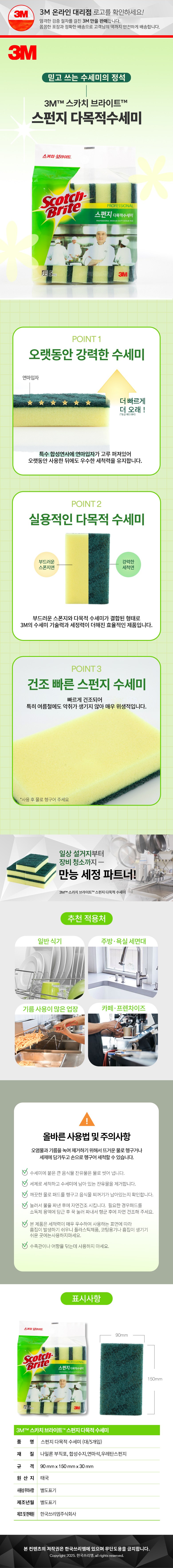 | 품명 및 모델명 | 스카치브라이트 스펀지 다목적 수세미 | 재질 | 컨텐츠 참조 |