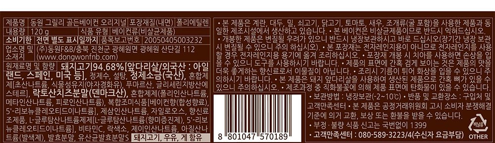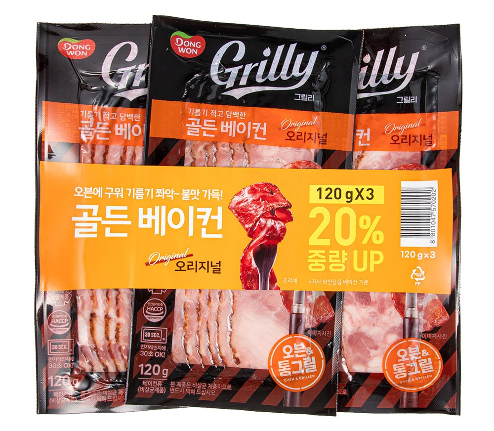 | 제품명 | 동원 그릴리 골든베이컨 오리지널 | 식품의 유형 | 컨텐츠참조 |