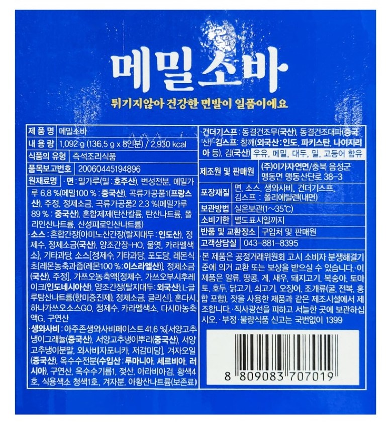 - 국수 주재료: 메밀