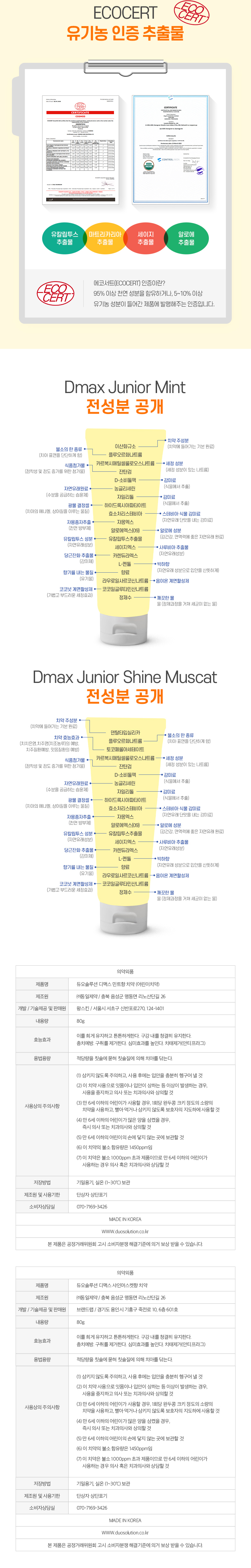 | 품명 및 모델명 | 듀오솔루션 디맥스 민트향 치약 | 인증/허가 사항 | 의약외품 |
