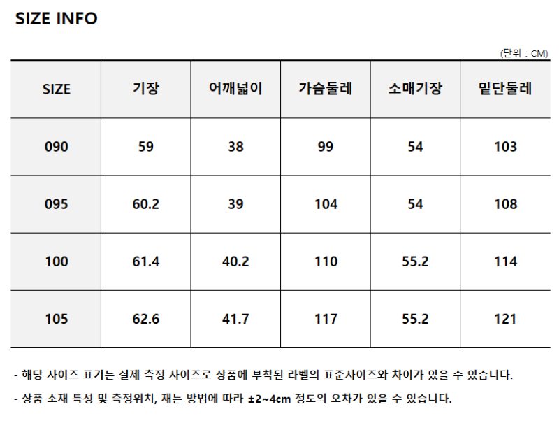 | 치수 | 사이즈105:기장62.6*어깨넓이41.7*가슴둘레117*소매기장55.2*밑단둘레121 | 제조자(수입자) | 알 수 없음(업체 미제공)/ 제이와이제이어패럴주식회사 |