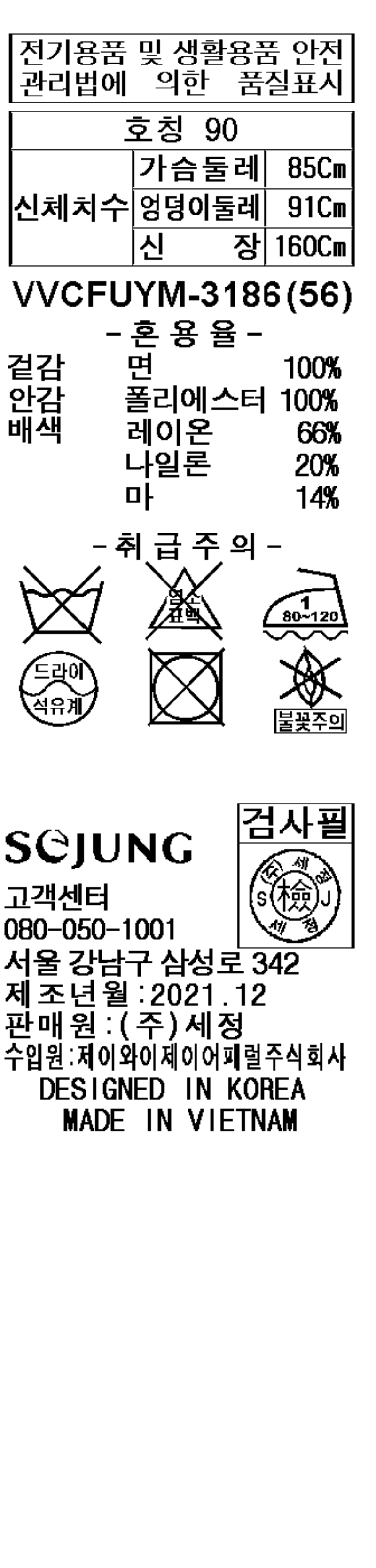 | 제조국 | 베트남 | 세탁방법 및 취급시 주의사항 | 반드시 드라이크리닝 하십시오 |