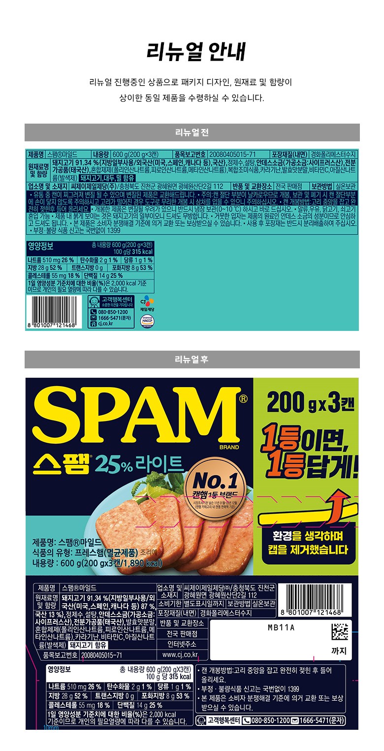 - 스팸 종류: 마일드/라이트