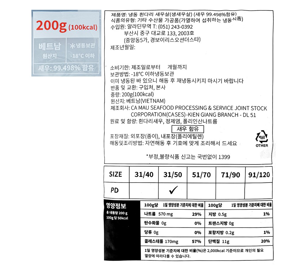 중량 × 수량: 200g(31/50) × 1개