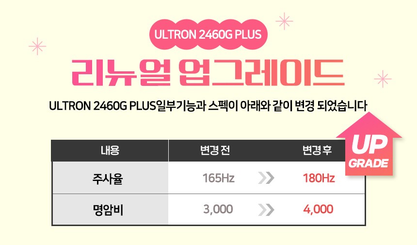 | 품명 및 모델명 | 한성컴퓨터 60.4cm FHD 리얼 180 게이밍 모니터 ULTRON 2460G PLUS | KC 인증정보 | 본품: R-R-ANM-UL24FJ7P , 유/KC마크 / 어댑터: SU10667-17002 |