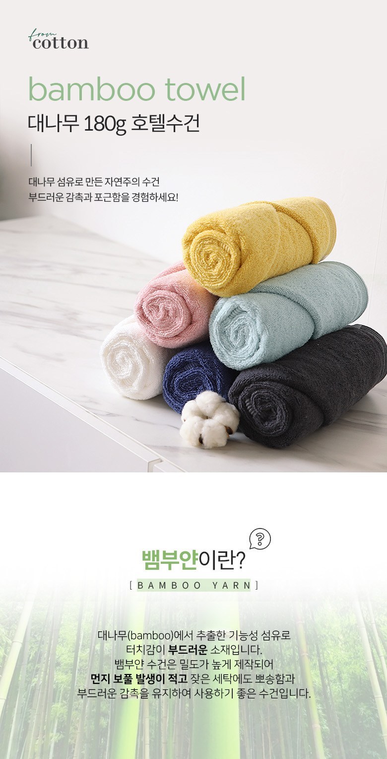 | 품명 및 모델명 | 프롬코튼 대나무 호텔수건 180g 뱀부얀 | 인증/허가 사항 | 해당없음 |