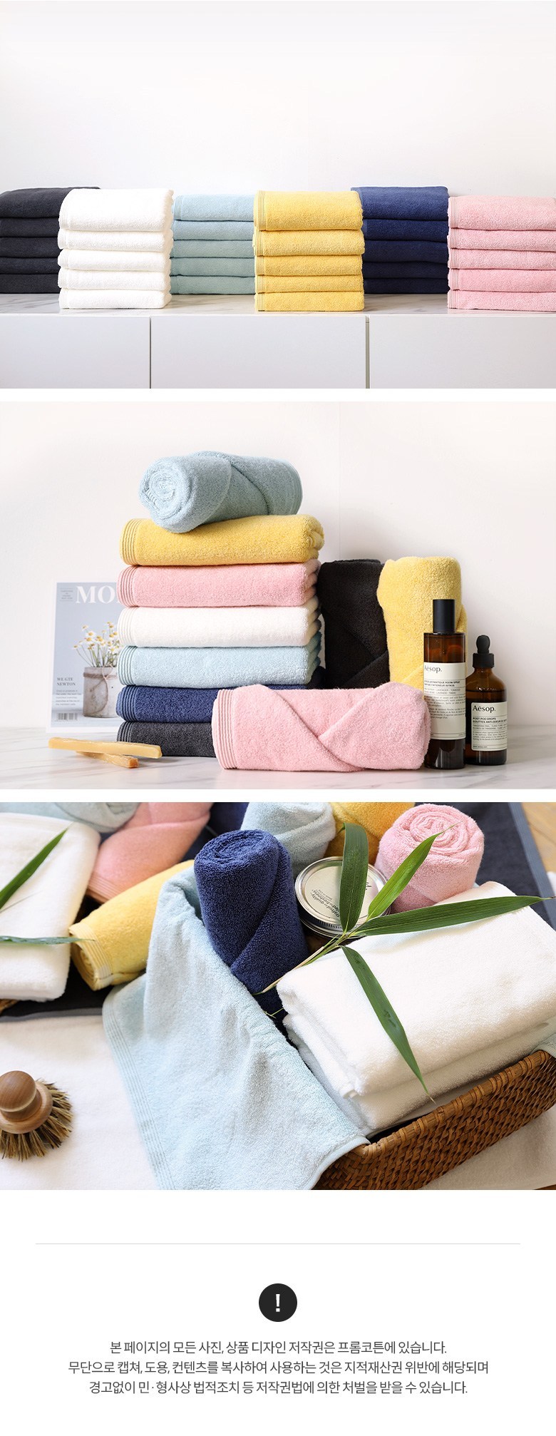 | 제조국(원산지) | 리뉴얼 전: 대한민국 | 리뉴얼 후: 베트남 | 제조자(수입자) | 리뉴얼 전: 프롬코튼 | 리뉴얼 후: 업체미제공 / 세미콜론식스, (주)타월박물관 |