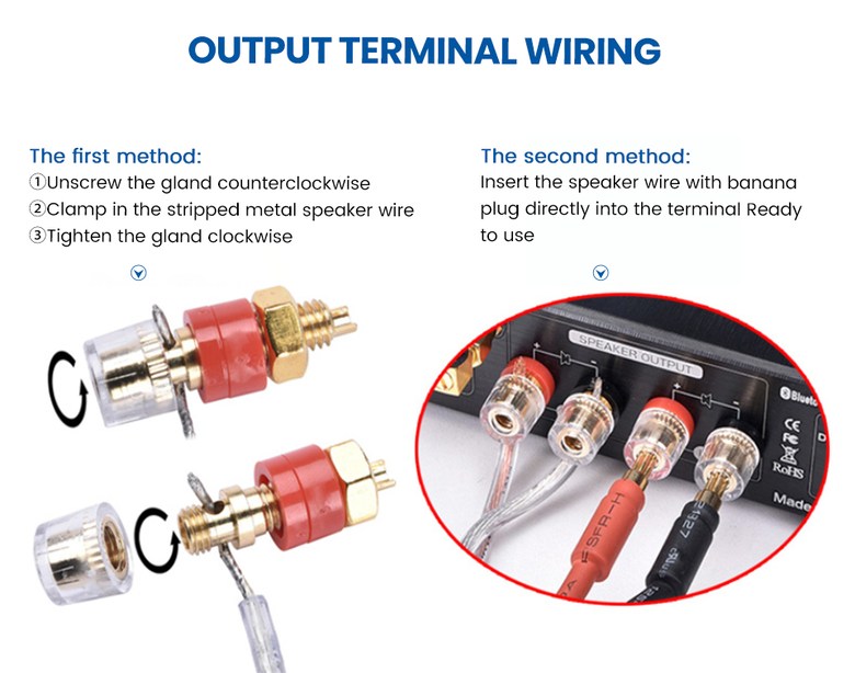 3.강력한 출력과 저주파 출력: 앰프 ICTPA3221을 사용하면 각 채널이 100W(4Ω)를 출력할 수 있으며, 모든 3-8Ω 패시브 스피커를 구동하기에 완벽하고 쉽게 일치하며, 액티브 스피커를 연결하고 2.1채널 시스템을 구축하기 쉬운 저주파 출력을 추가하여, 베이스 효과가 크게 향상된다.
