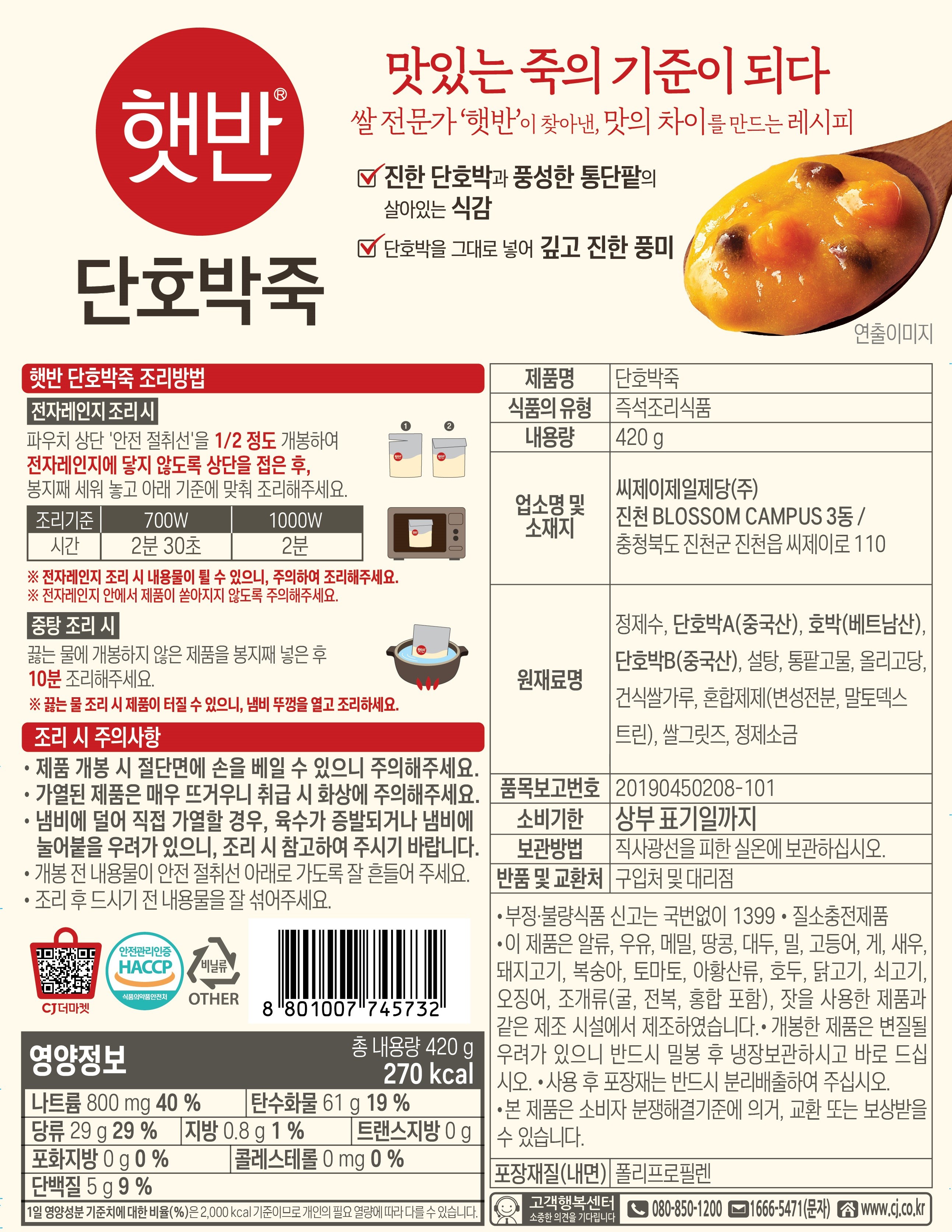 - 섭취방법: 즉석완조리식품