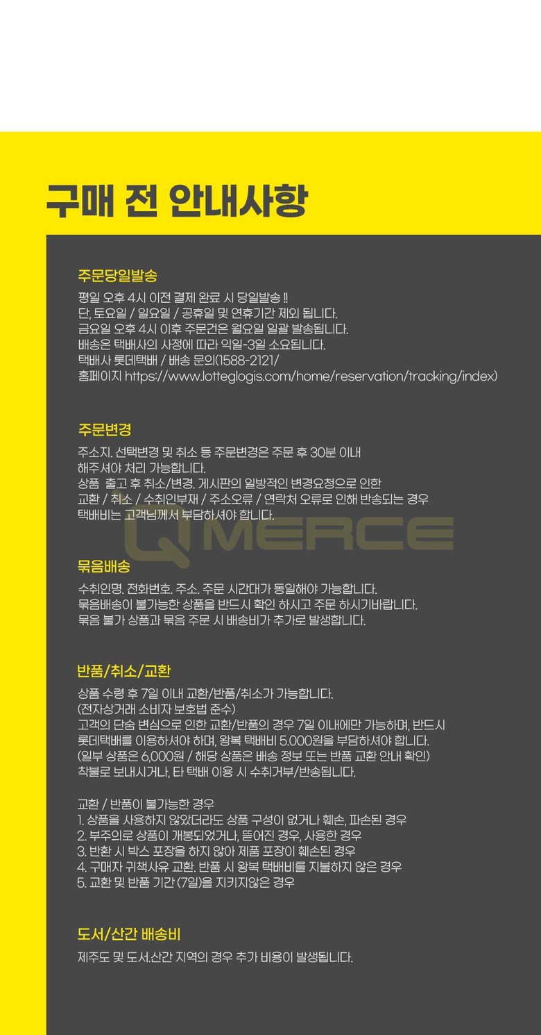 - ㆍ교환/반품에 관한 일반적인 사항은 판매자가 제시사항보다 관계법령이 우선합니다.