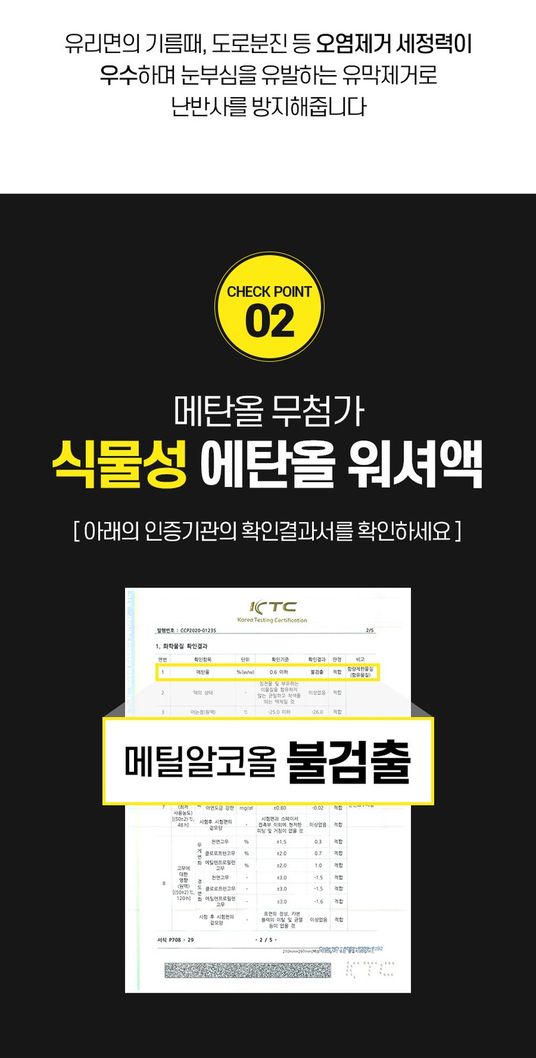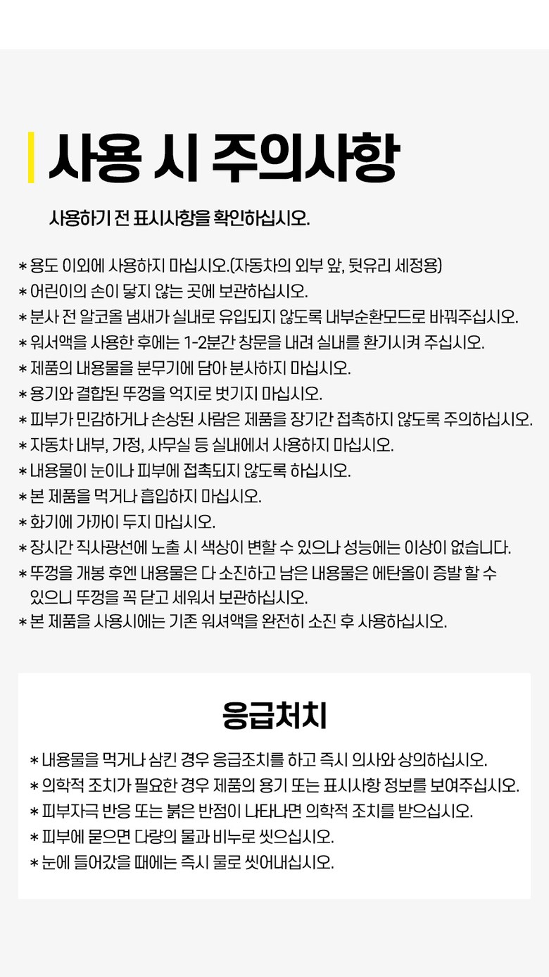 - 워셔액 주성분: 에탄올