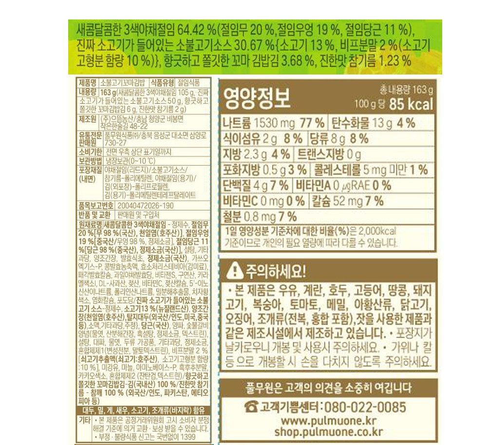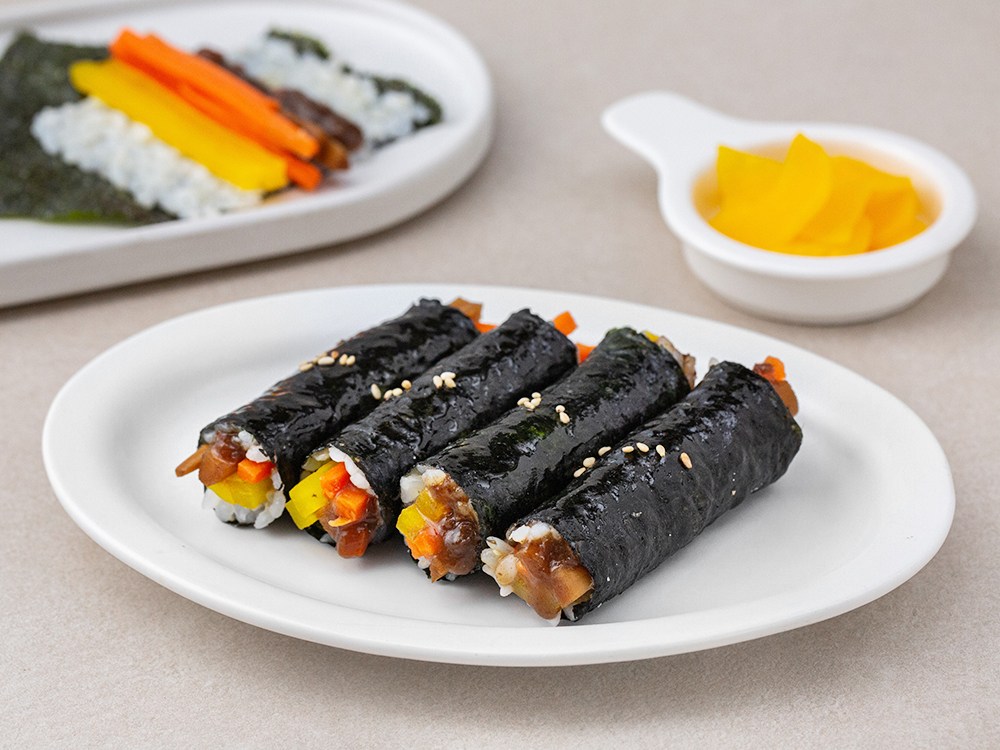 밥만 따로 준비해 맛있는 꼬마 김밥을 만들어보세요. 고소한 김밥 속 단무지, 절임 우엉, 당근의 조화가 풍성한 맛과 색감을 더해주지요. 소불고기 소스가 달착지근한 감칠맛을 선사한답니다. 아이들을 위한 즐거운 식사로도, 든든한 도시락 메뉴로도 제격이에요.