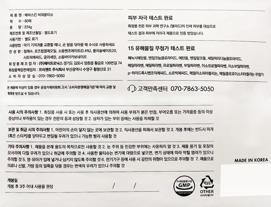 | 용량(중량) | 224g(60매)X10팩 | 제품 주요 사양 | 모든 피부용 |
