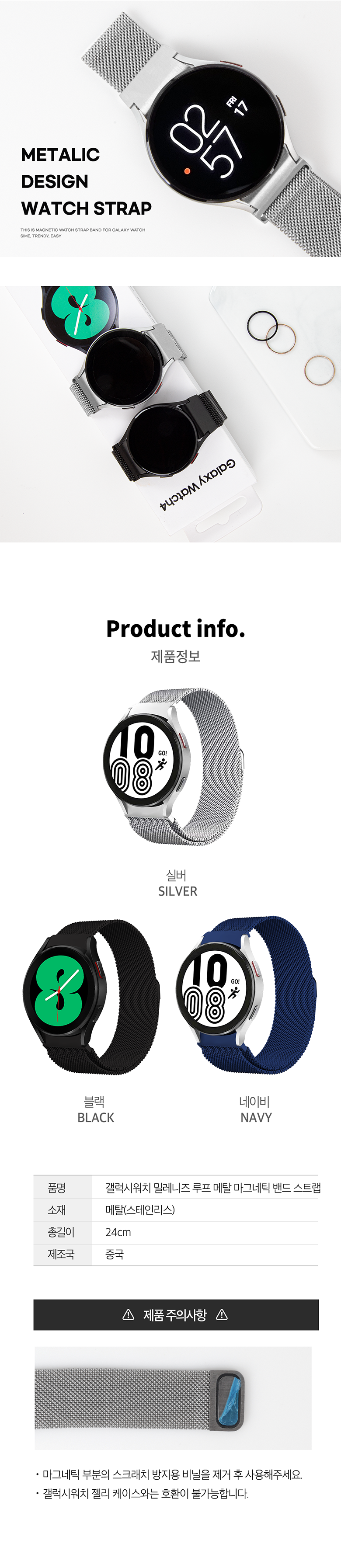 | 품명 및 모델명 | 갤럭시워치 밀레니즈 루프 메탈 마그네틱 밴드 스트랩 | 인증/허가 사항 | 해당없음(14세이상) |