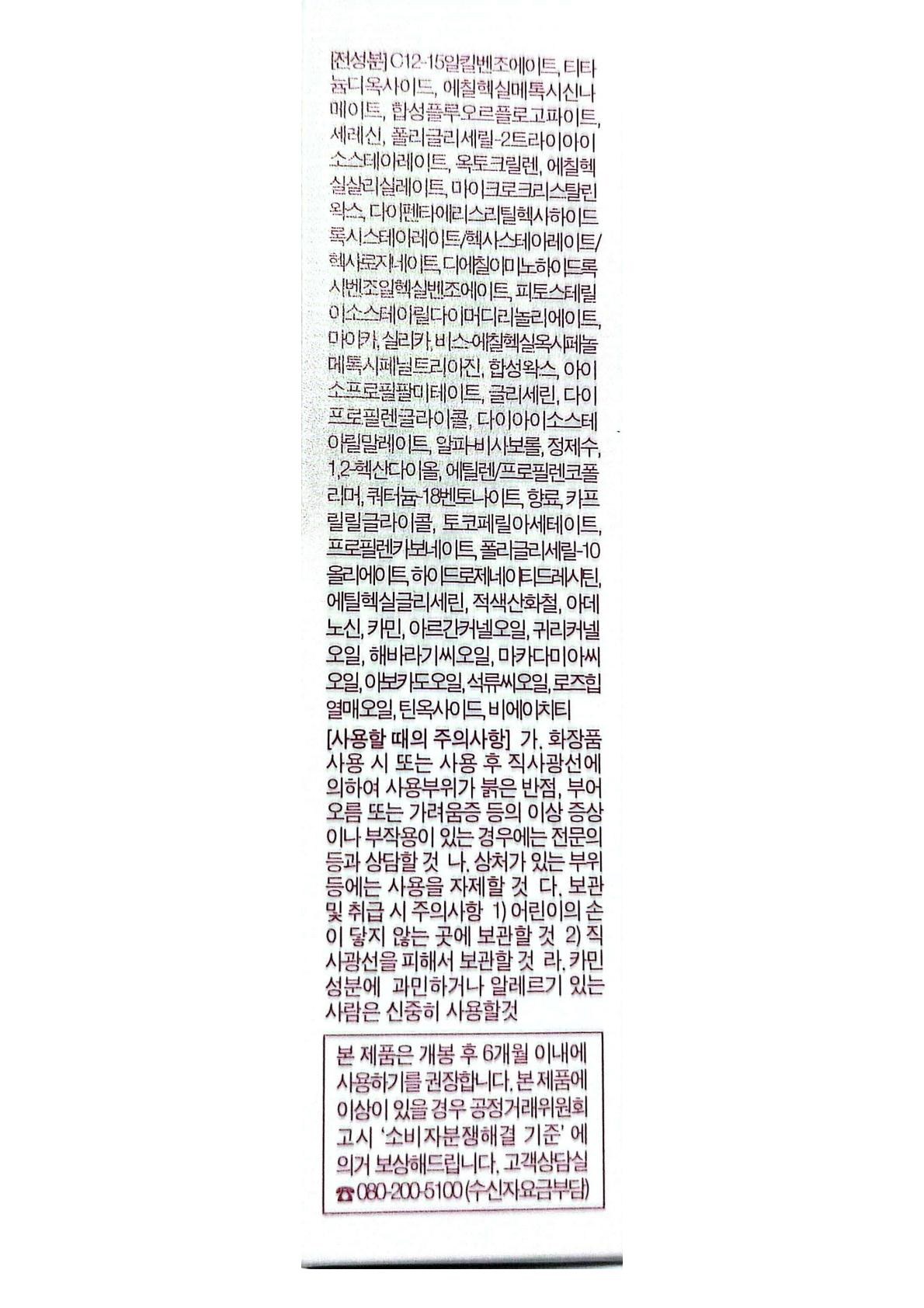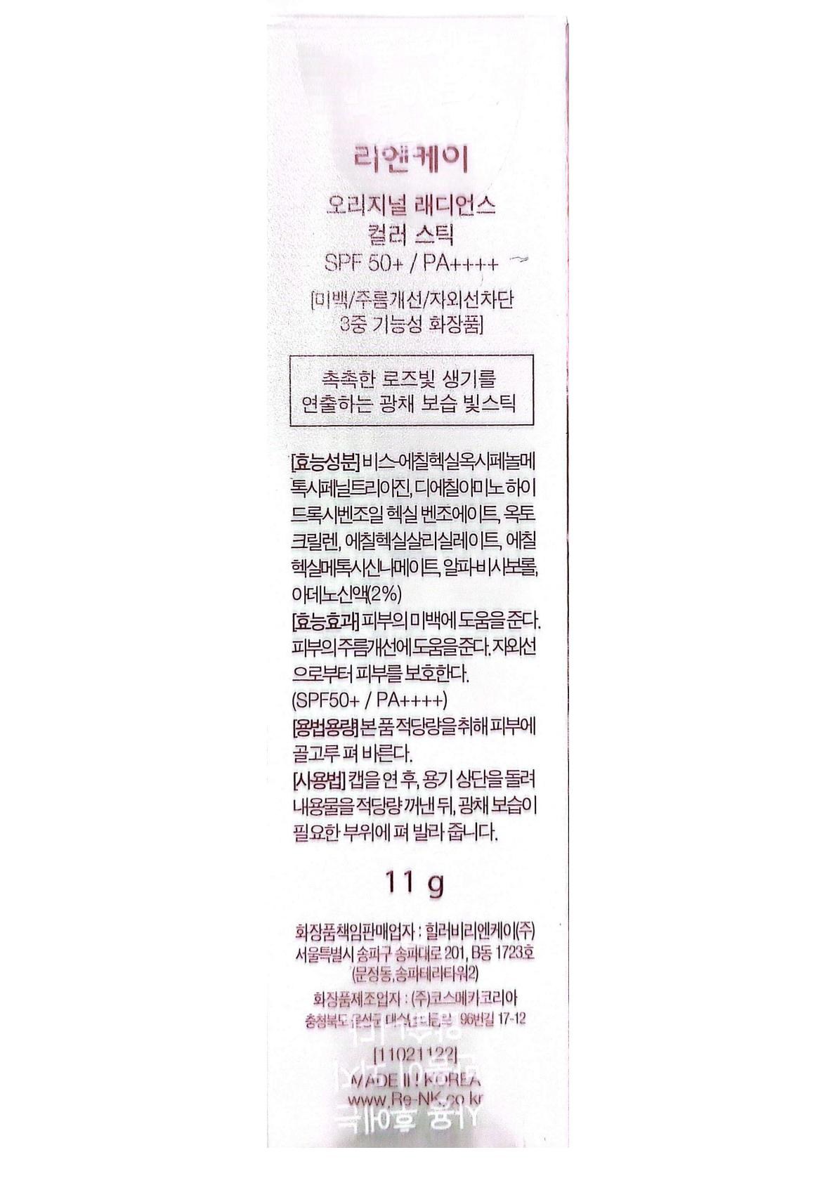 | 화장품제조업자, 화장품책임판매업자 및 맞춤형화장품판매업자 | 컨텐츠 참조 | 제조국 | 대한민국 |