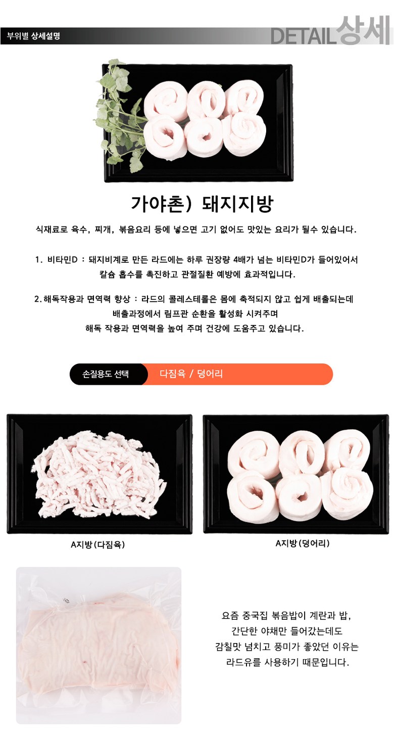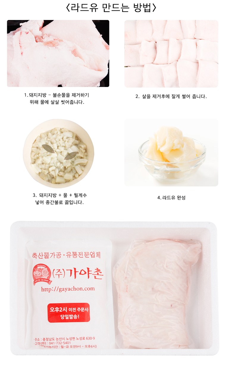| 품목 또는 명칭 | 돼지 지방 500g | 포장단위별 내용물의 용량(중량),수량,크기 | 500g |