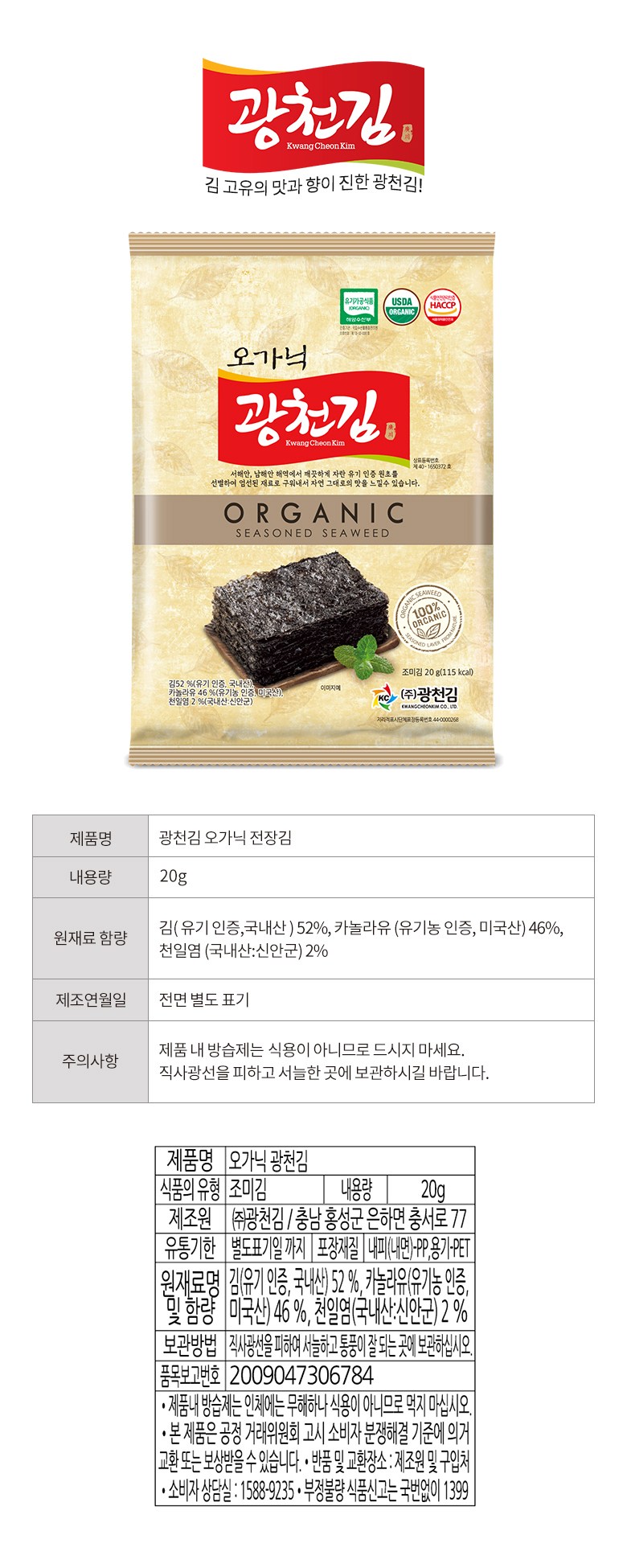 | 포장단위별 내용물의 용량(중량), 수량 | 20g x 6봉,1개 | 원재료명 및 함량 | 컨텐츠 참조 |