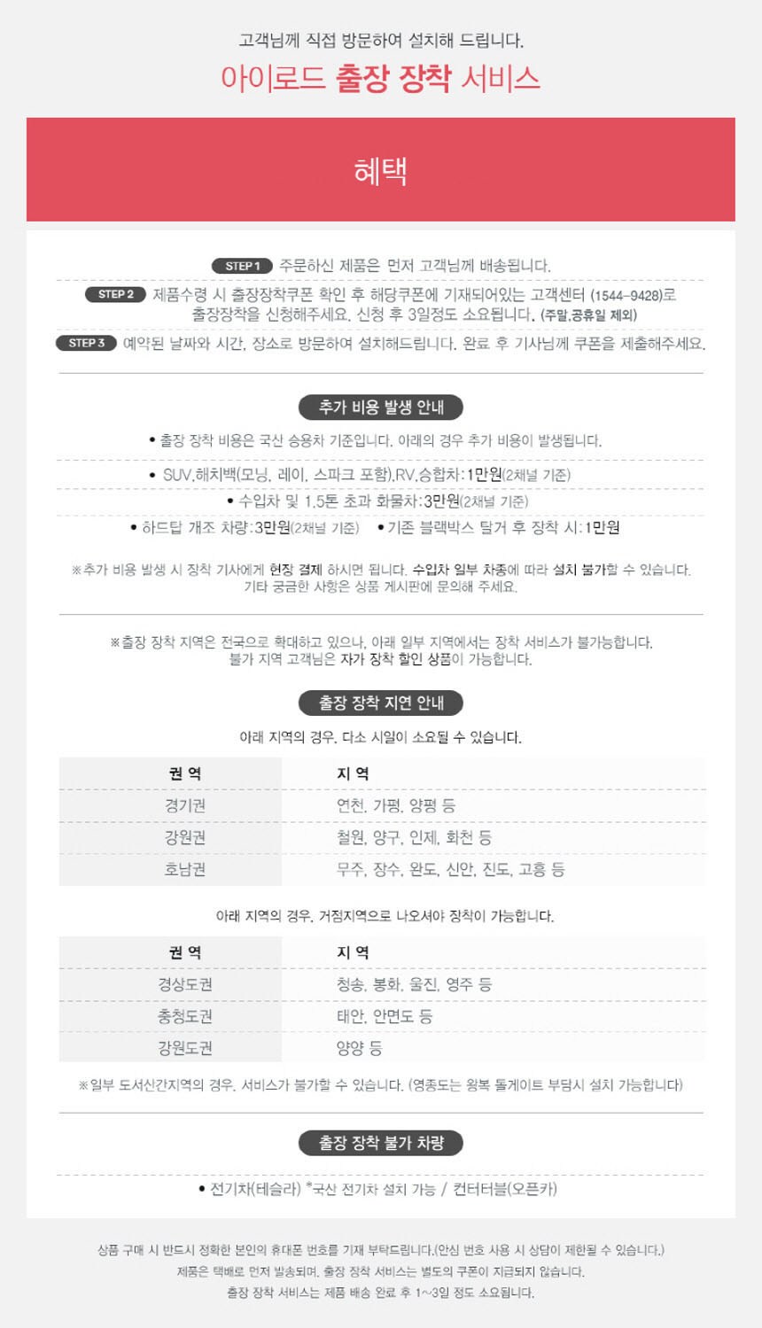 | 자동차용품 | ㆍ상품을 개봉하여 장착한 이후 단순변심인 경우 |