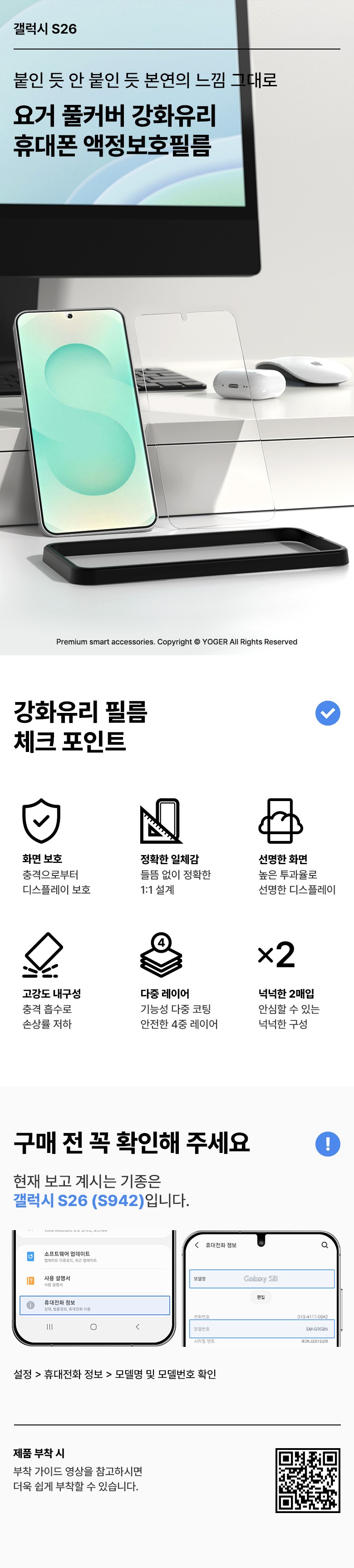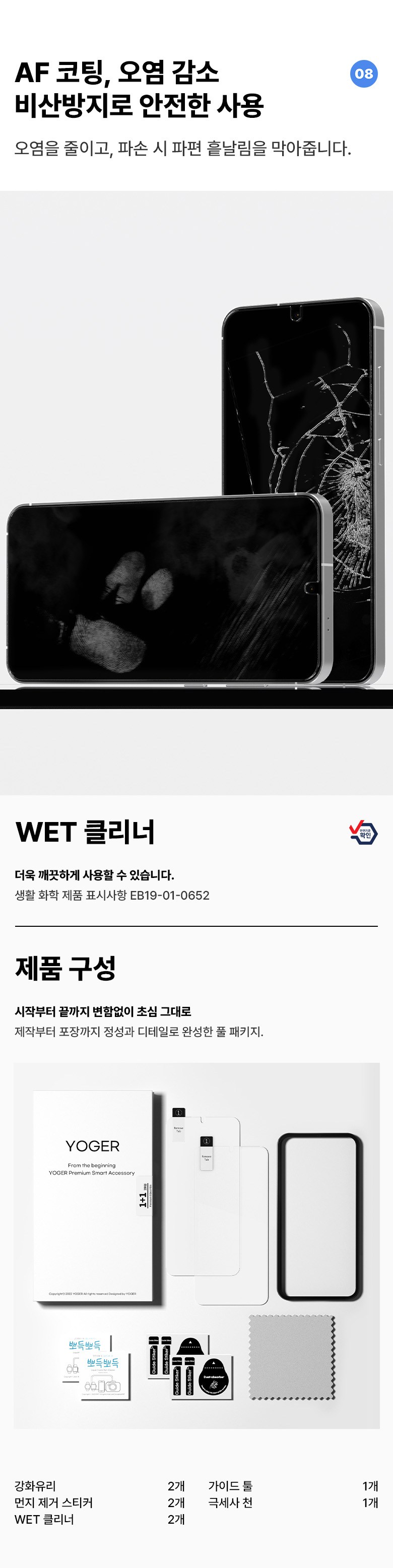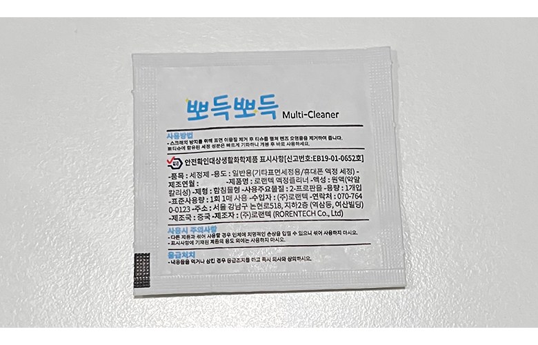 | 품명 및 모델명 | 요거 액정보호필름 | 인증/허가 사항 | 본품: 해당없음(14세 이상)ㅣ클리너: EB19-01-0652 |