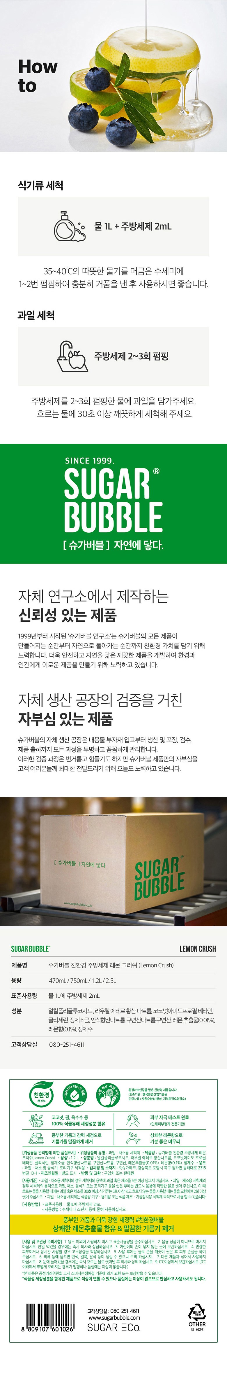 | 품명 및 모델명 | 슈가버블 친환경 주방세제 레몬 크러쉬 | 인증/허가 사항 | 위생용품 |