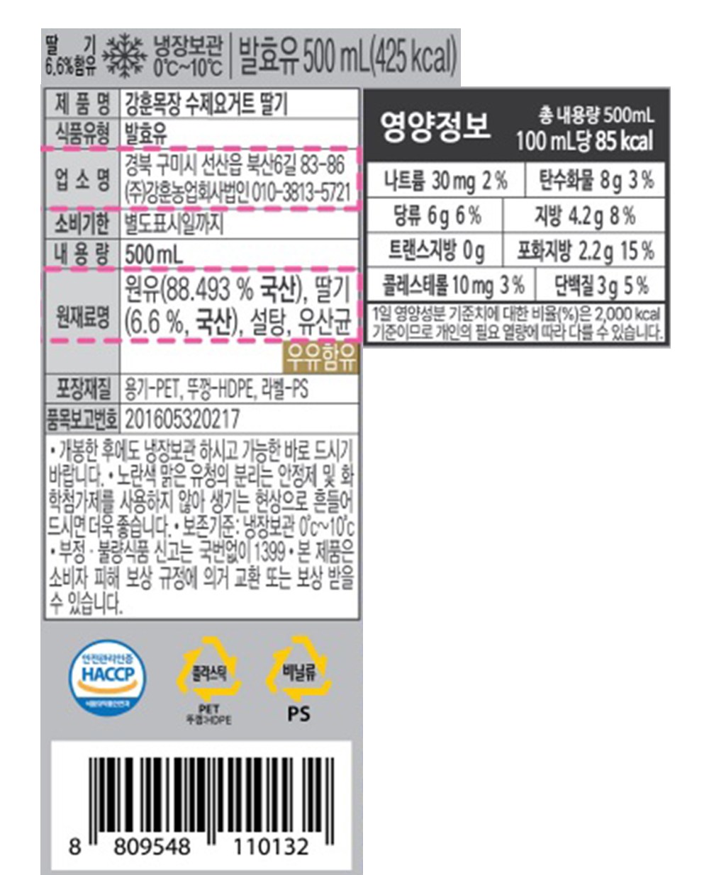 | 생산자 및 소재지 | 컨텐츠 참조 | 소비기한 또는 품질유지기한 | 소비기한(또는 유통기한) : 2026년 02월 22일 이거나 그 이후인 상품 |