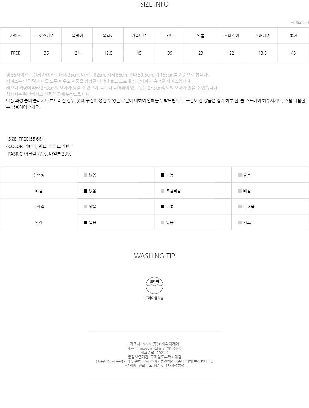 | 제조국 | 중국 | 세탁방법 및 취급시 주의사항 | 컨텐츠 참조 |