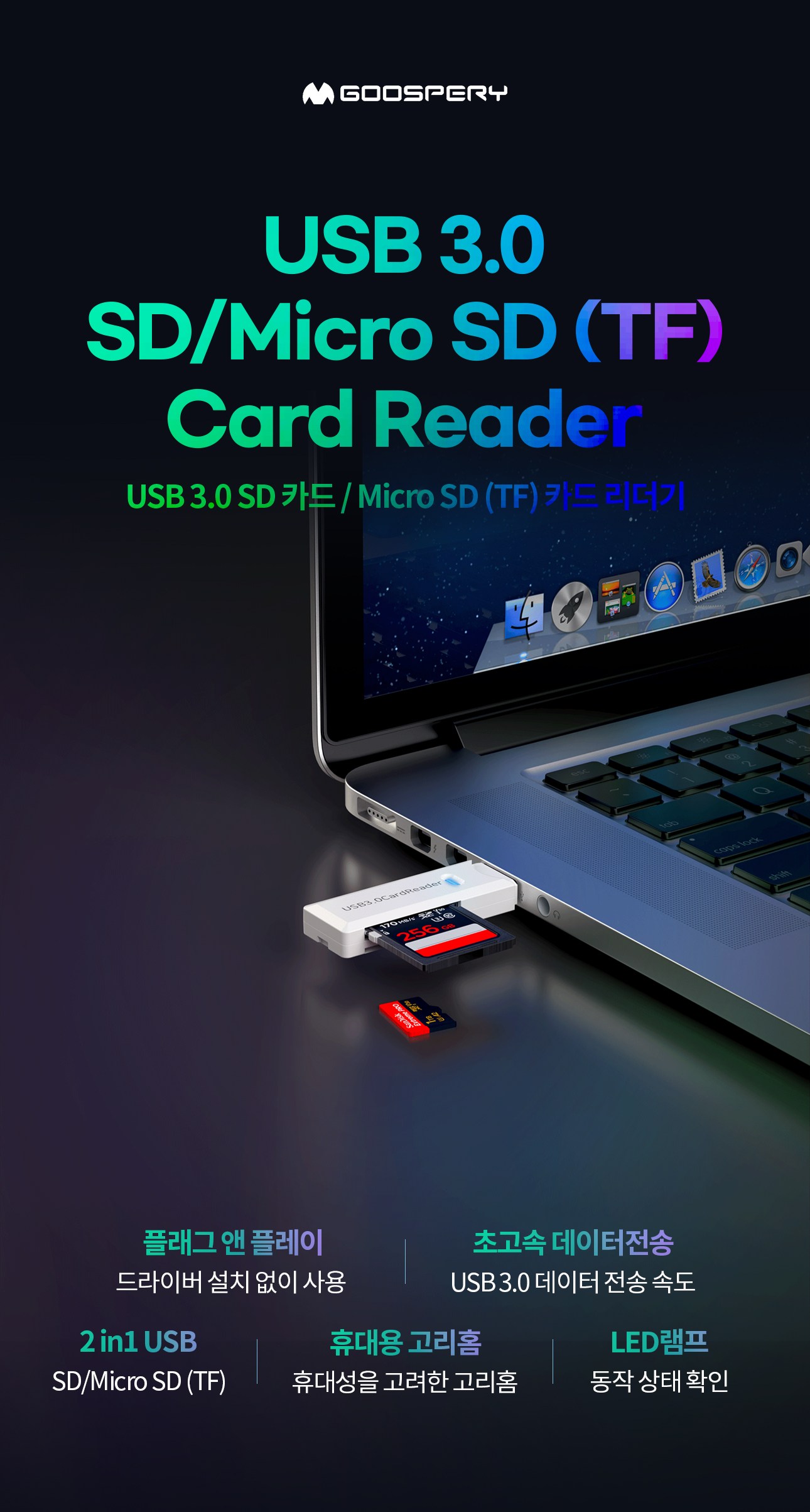 | 품명 및 모델명 | 구스페리 USB 3.0 SD / TF 카드 리더기 / USB 3.0 CARD READER | KC 인증정보 | R-R-mer-USB30 |