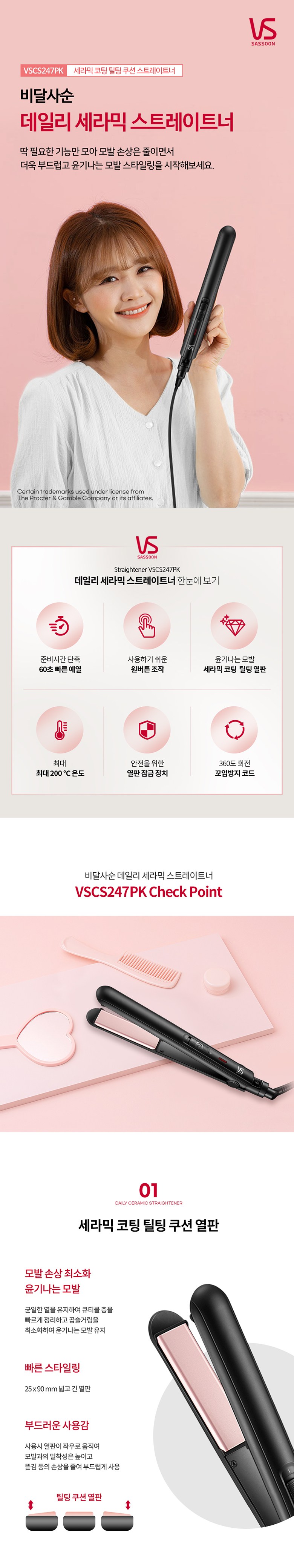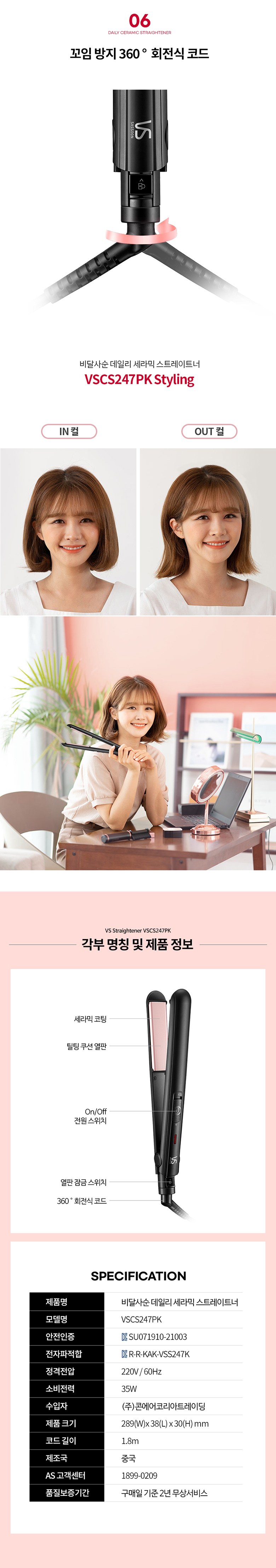 | 품명 및 모델명 | 비달사순 데일리 세라믹 스트레이트너 VSCS247PK | KC 인증정보 | SU071910-21003, R-R-KAK-VSS247K |