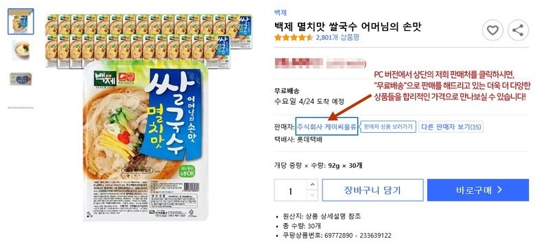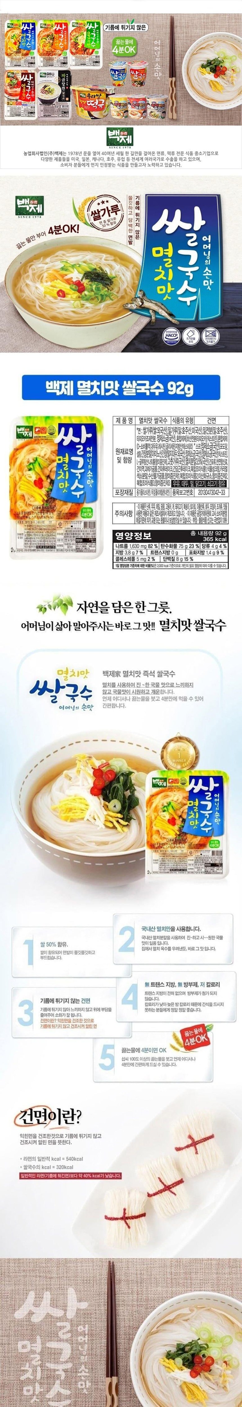 | 제품명 | 백제 멸치맛 쌀국수 92gx30개 | 식품의 유형 | 면-국수, 스프-복합조미식품 |