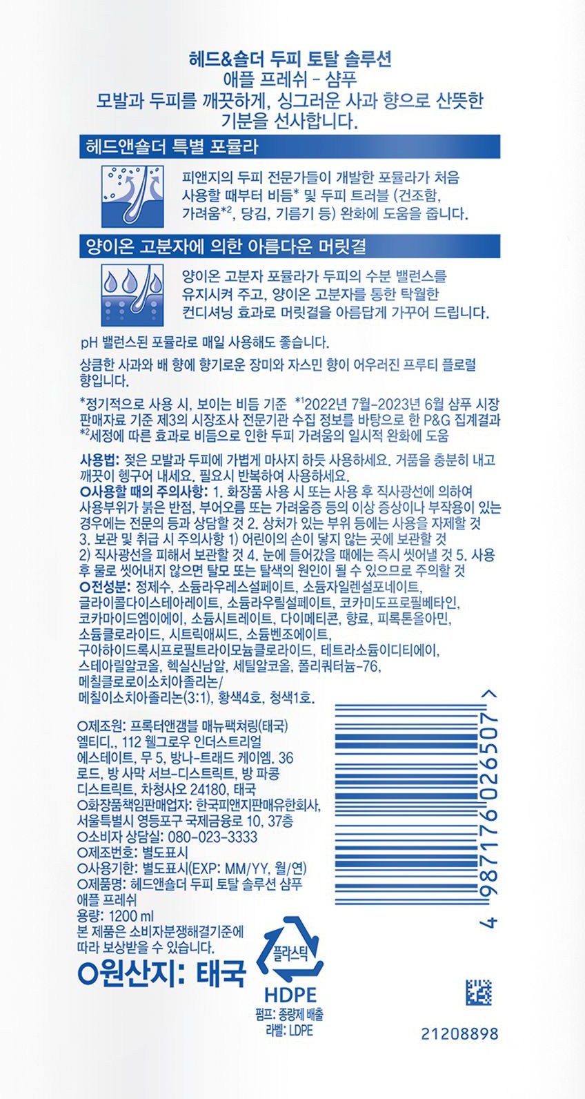 | 용량(중량) | 1200ml | 제품 주요 사양 | 모든 모발용 |