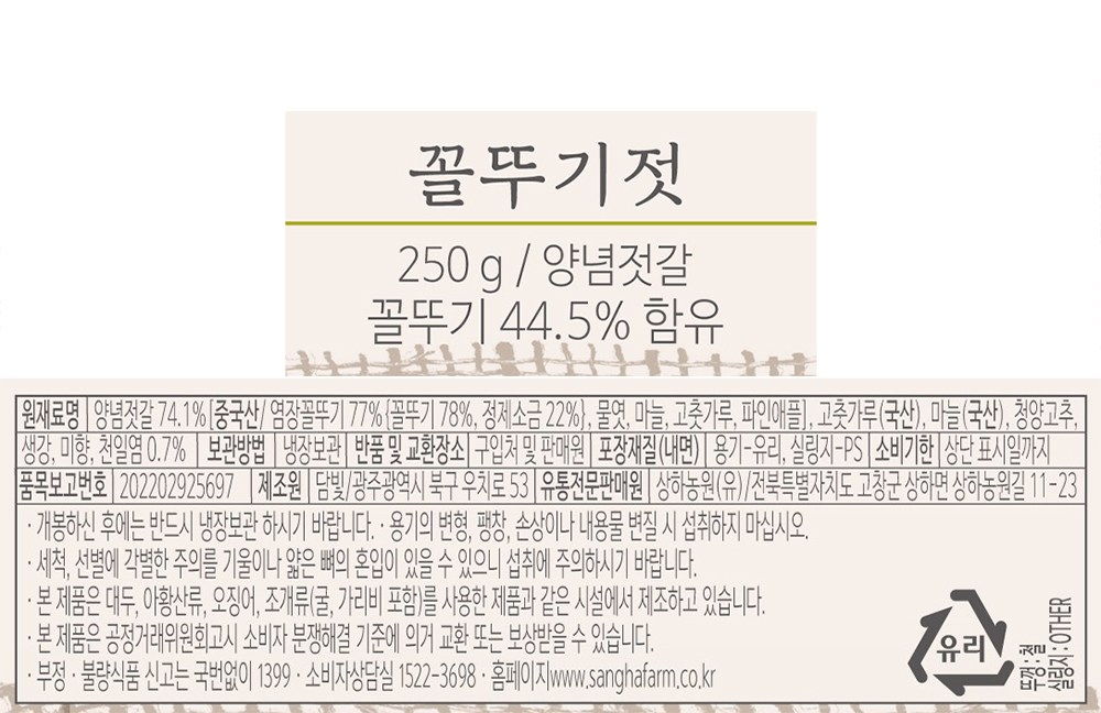 | 제품명 | 상하농원 꼴뚜기젓 | 식품의 유형 | 컨텐츠참조 |
