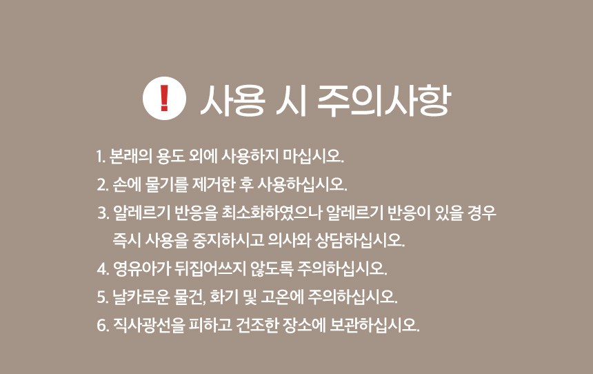 - 제품의 권장 용도: 손