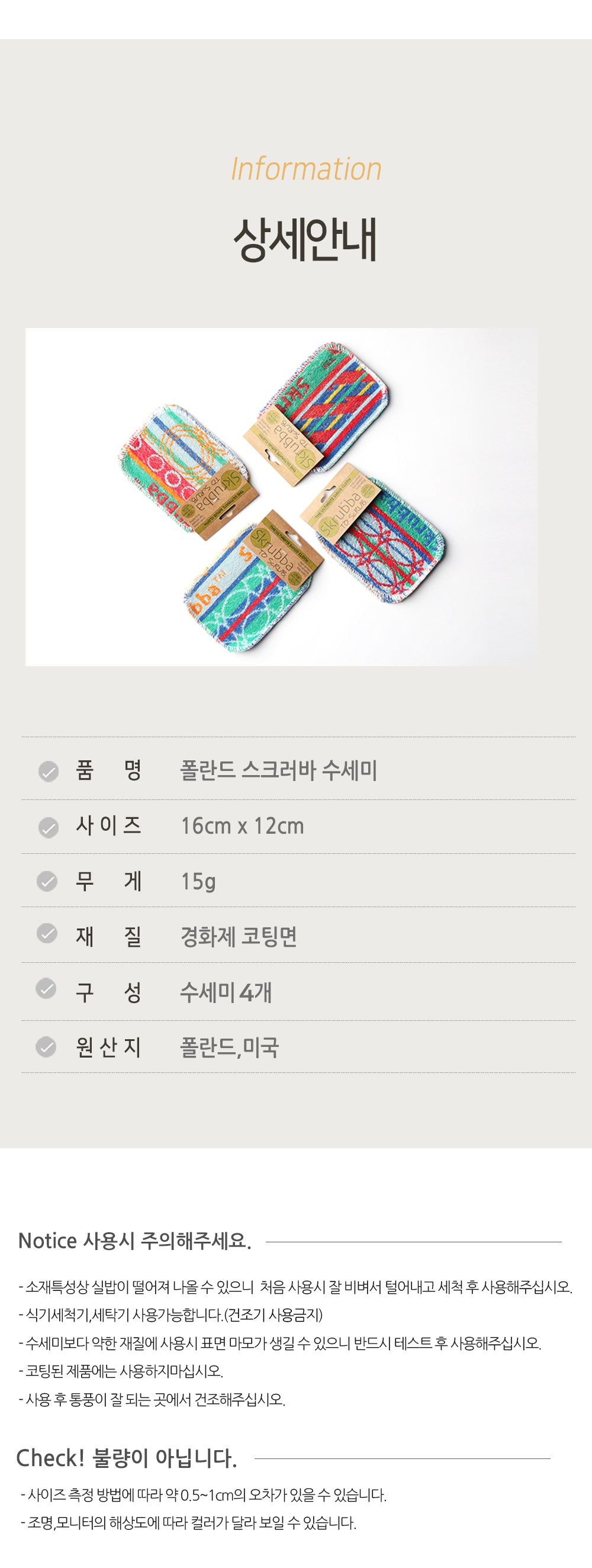 | 품명 및 모델명 | J TABLE 폴란드 스크러바 수세미 4개세트(랜덤배송) | 재질 | 컨텐츠 참조 |