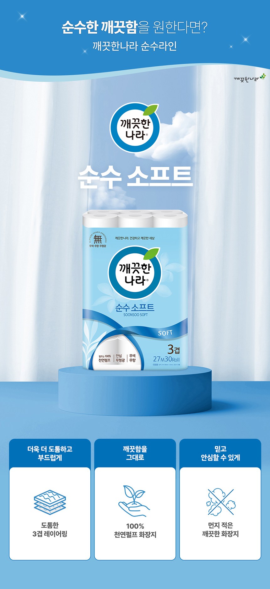 | 품명 및 모델명 | 깨끗한나라 순수 소프트 3겹 | 인증/허가 사항 | 위생용품 |