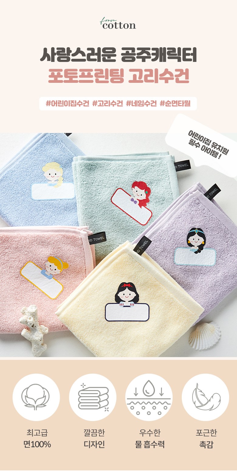 | 품명 및 모델명 | 프롬코튼 30수 순면 100% 고리수건 공주프린팅 핑크(신데렐라) 5매 | KC 인증정보 | CB014B281-2001 |