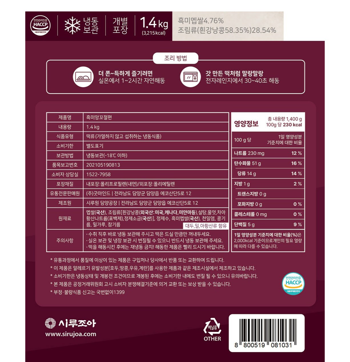 [시루조아] 굳지 않는 떡 흑미 앙꼬절편
