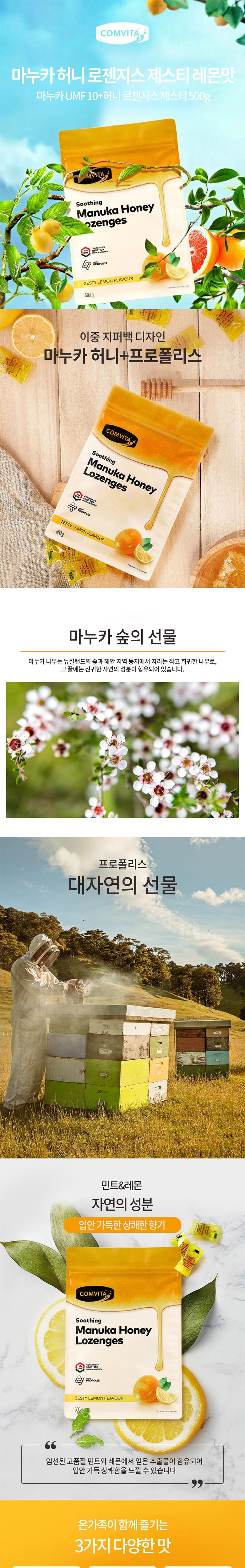 | 제품명 | 마누카 허니 로젠지스 제스티 레몬맛 | 식품의 유형 | 기타가공식품 |