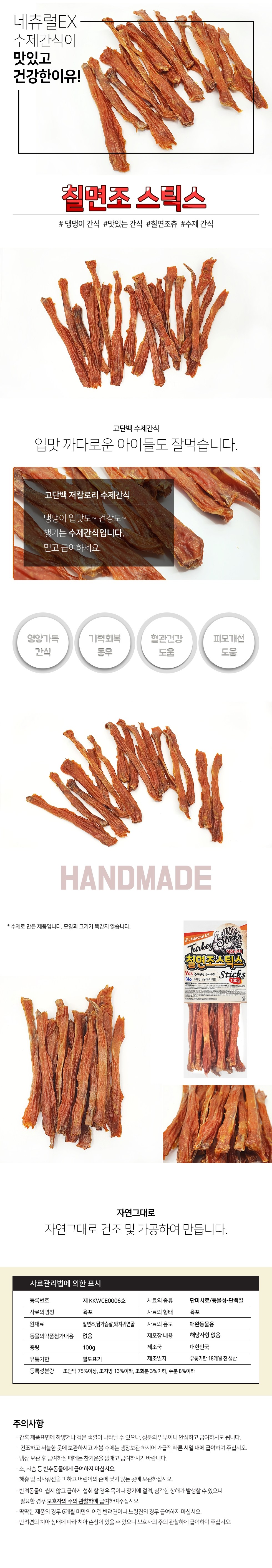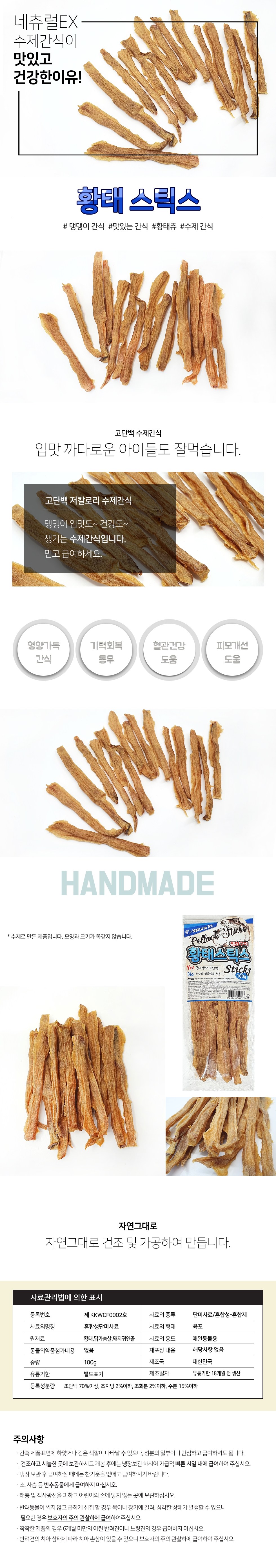 | 품명 및 모델명 | 네츄럴 EX 칠면조 스틱스 + 황태 스틱스 | 인증/허가 사항 | 사료관리법에 따른 성분등록번호 : 컨텐츠 참조 |