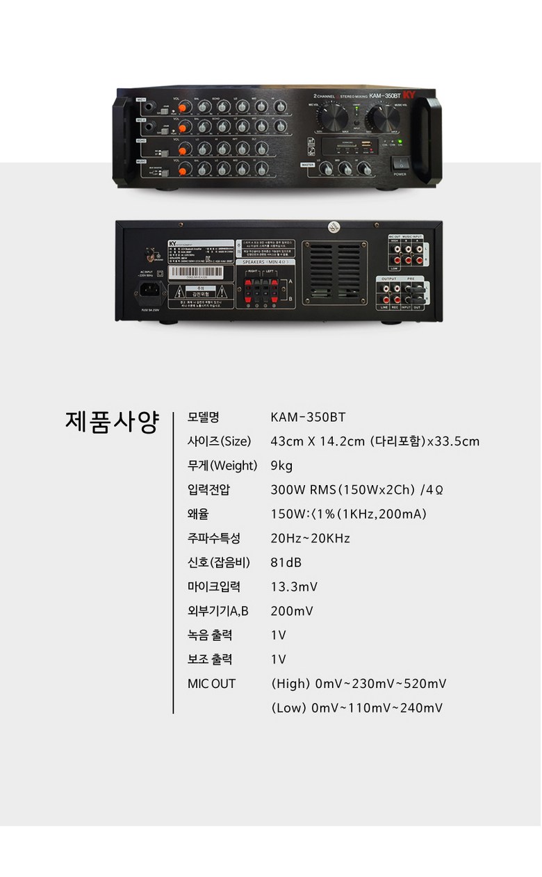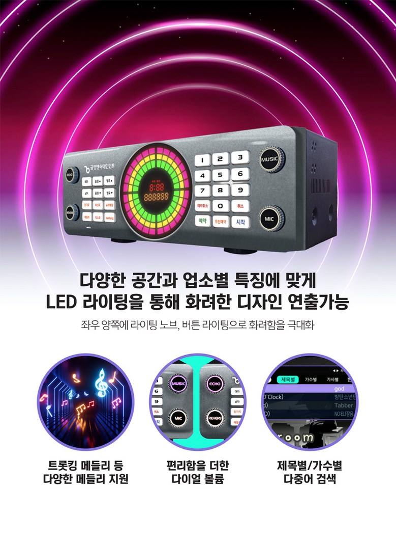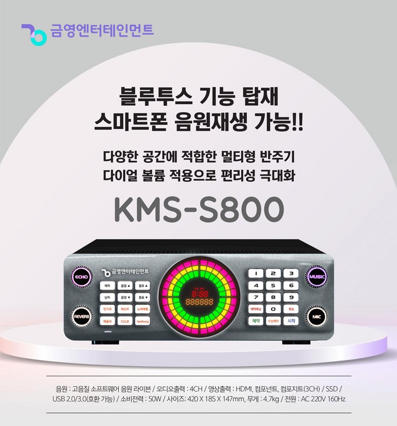 금영 KAM-350BT 블루투스 앰프로 구성된 LED 모니터 일체형 노래방기기 입니다.