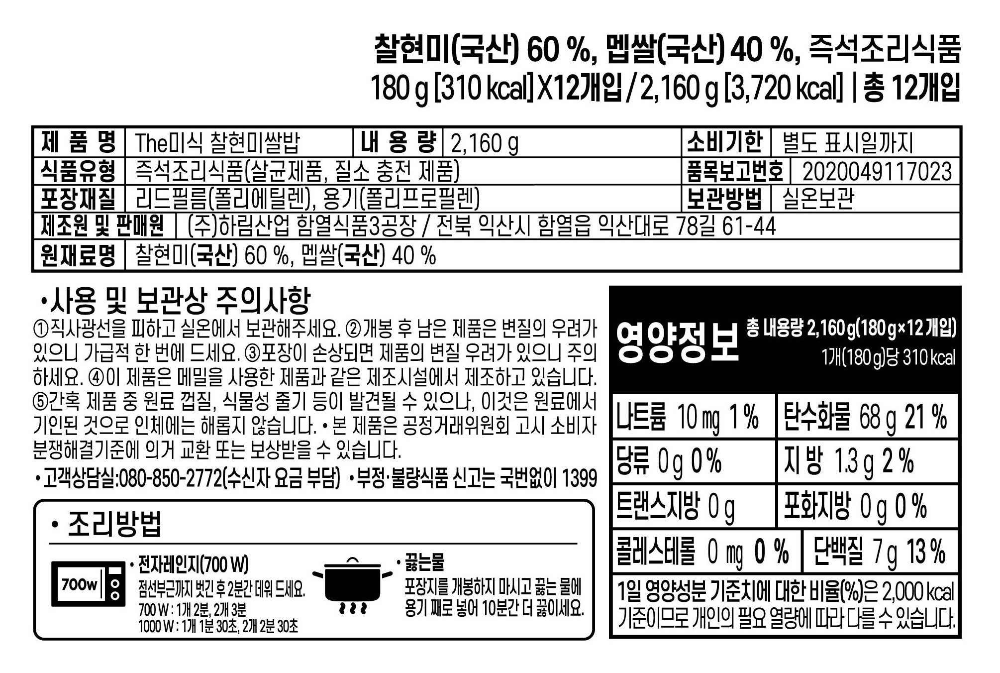 - 섭취방법: 즉석완조리식품