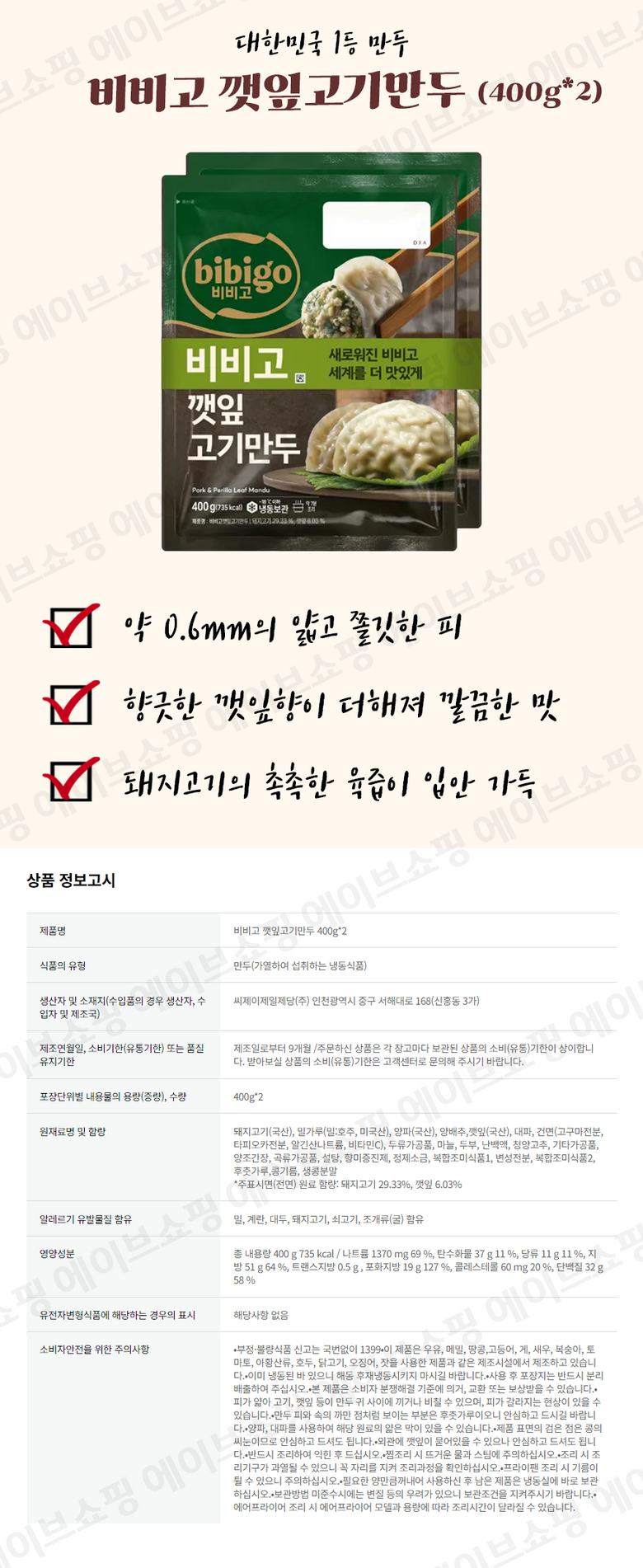 | 생산자 및 소재지 | 상품 상세페이지 참조 | 제조연월일, 소비기한 또는 품질유지기한 | 상품 상세페이지 참조 |